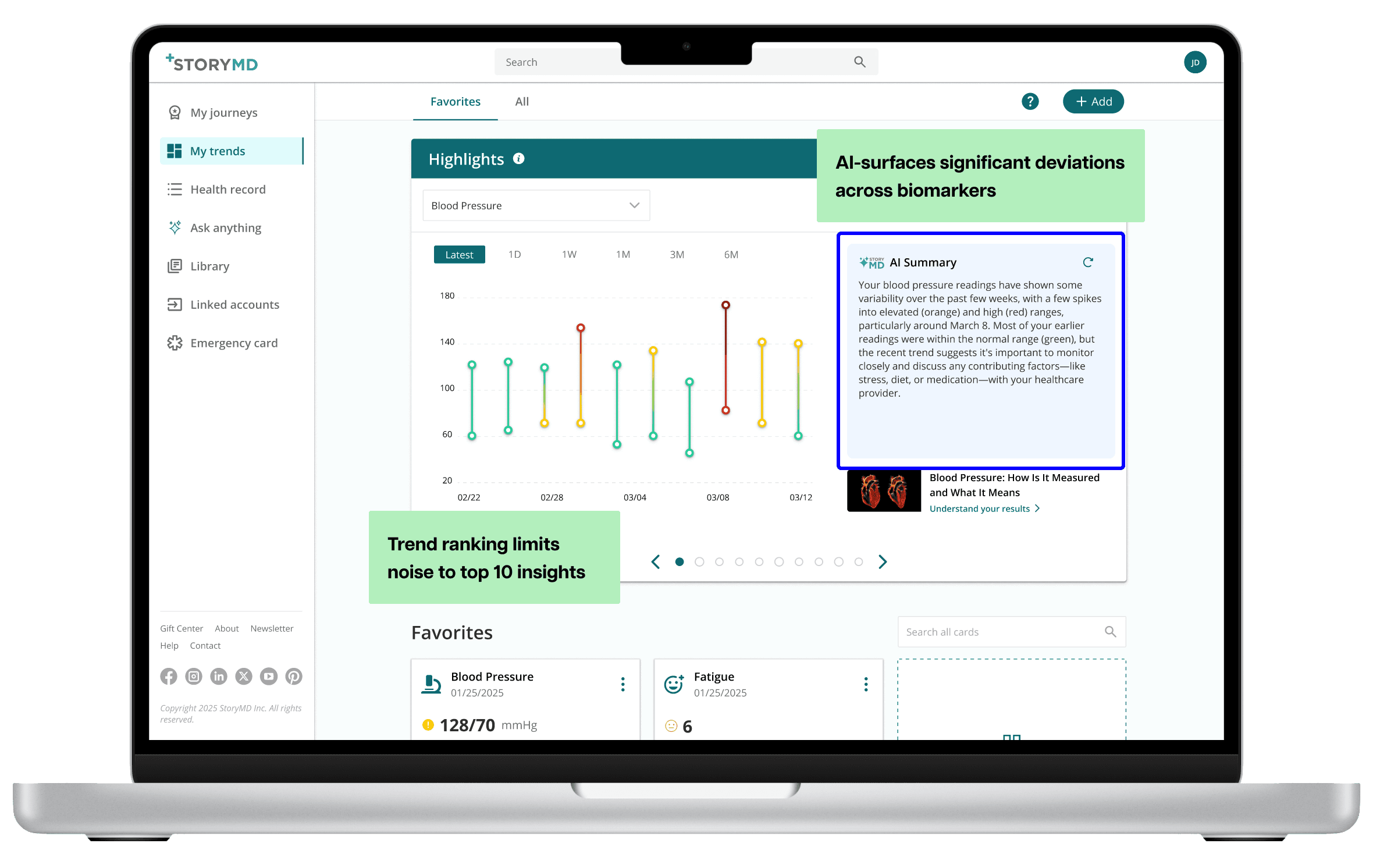 Introduced context-aware trend detection, adaptive risk flagging, and AI-generated summaries to transform raw health data into actionable insight for both patients and providers.