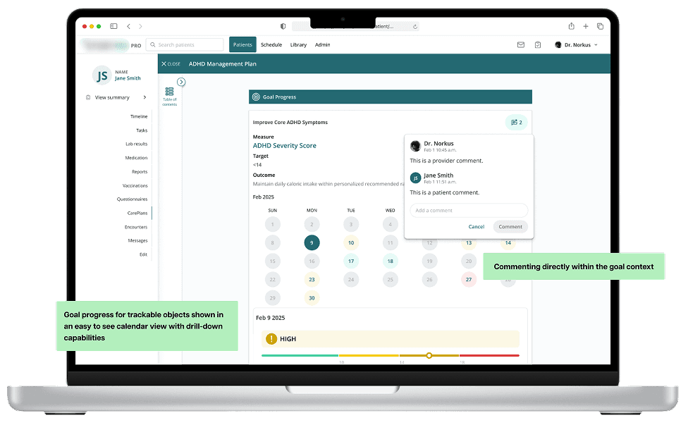 Communication between provider and patient was embedded within goals and tasks rather than isolated messaging threads, preserving context and traceability.